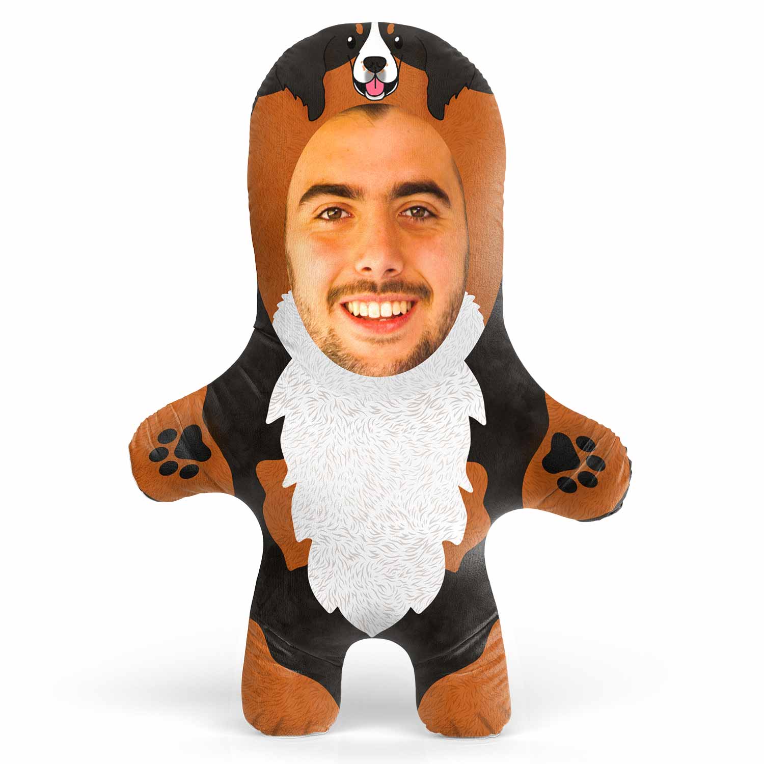 Turn yourself or a loved one into a hilarious Bernese Mountain Dog Face Pillow for the perfect gift.