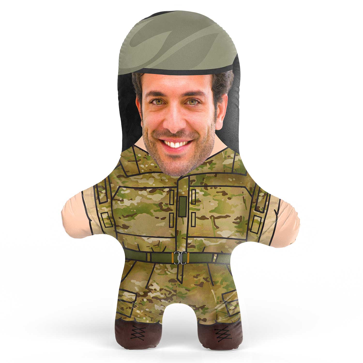 Turn yourself or a loved one into a hilarious British Army Combat Uniform Face Pillow for the perfect gift.