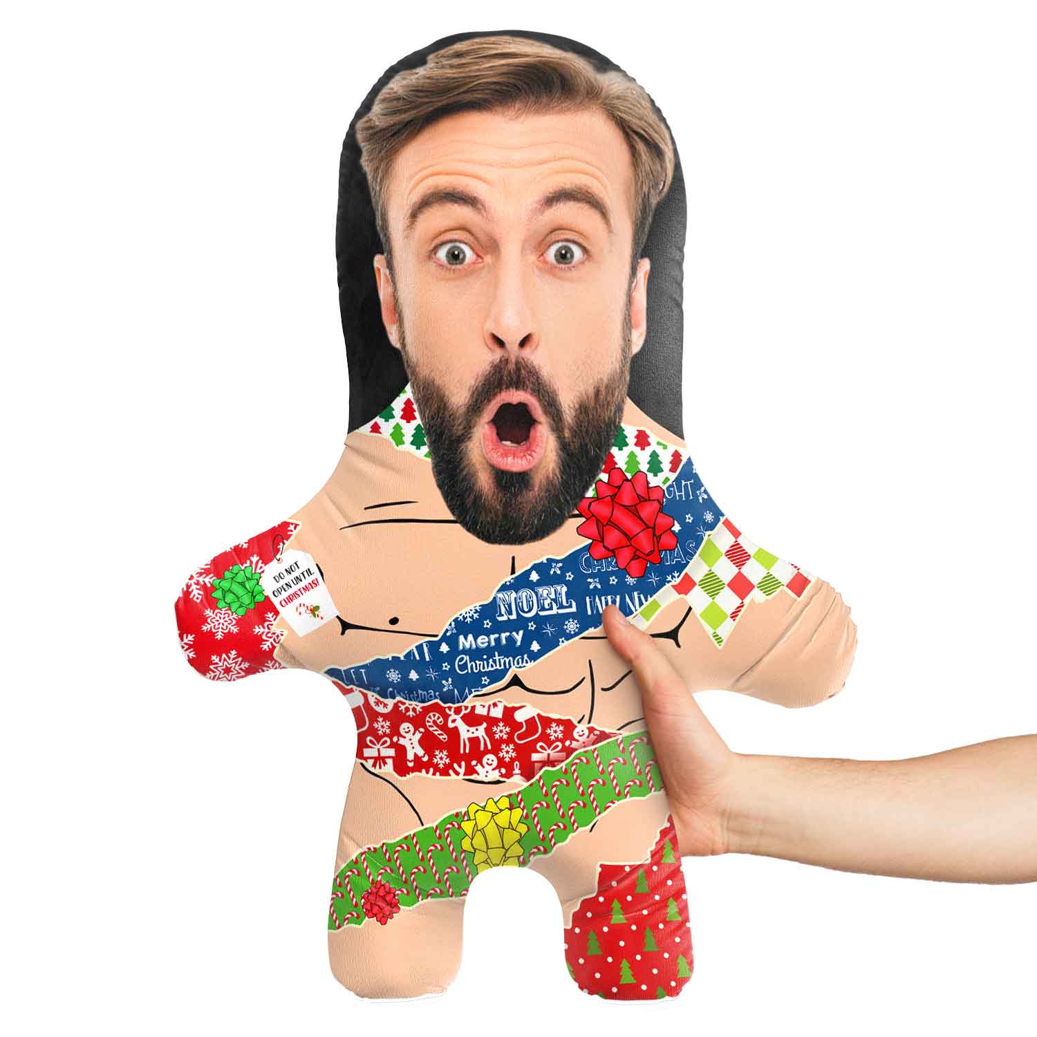 Turn yourself or a loved one into a hilarious Christmas Wrapped Up Face Pillow for the perfect gift.