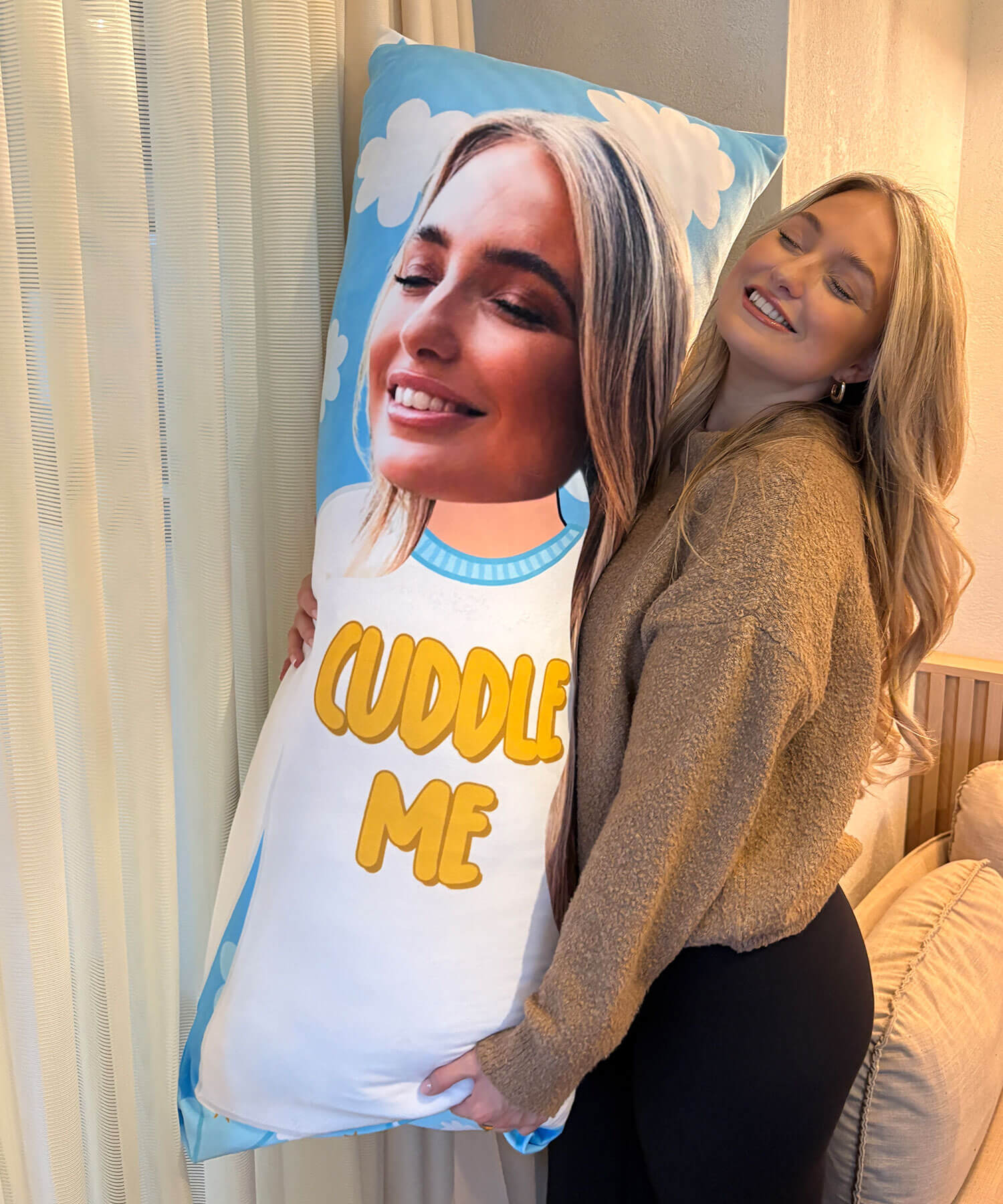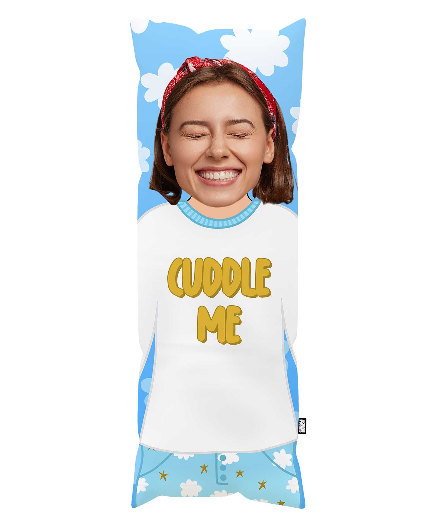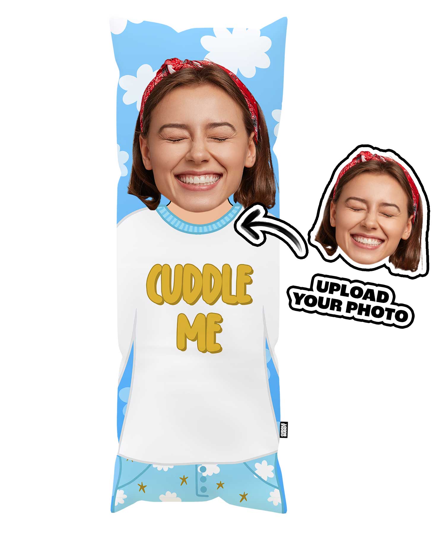 Questioning your cuddle game? Say no more with the Cuddle Me custom body pillow. Just upload a photo, and poof - a fun, squishy partner ready for movie marathons and chill nights. It's cuddle o'clock somewhere, and this photo pillow is here to answer the call.