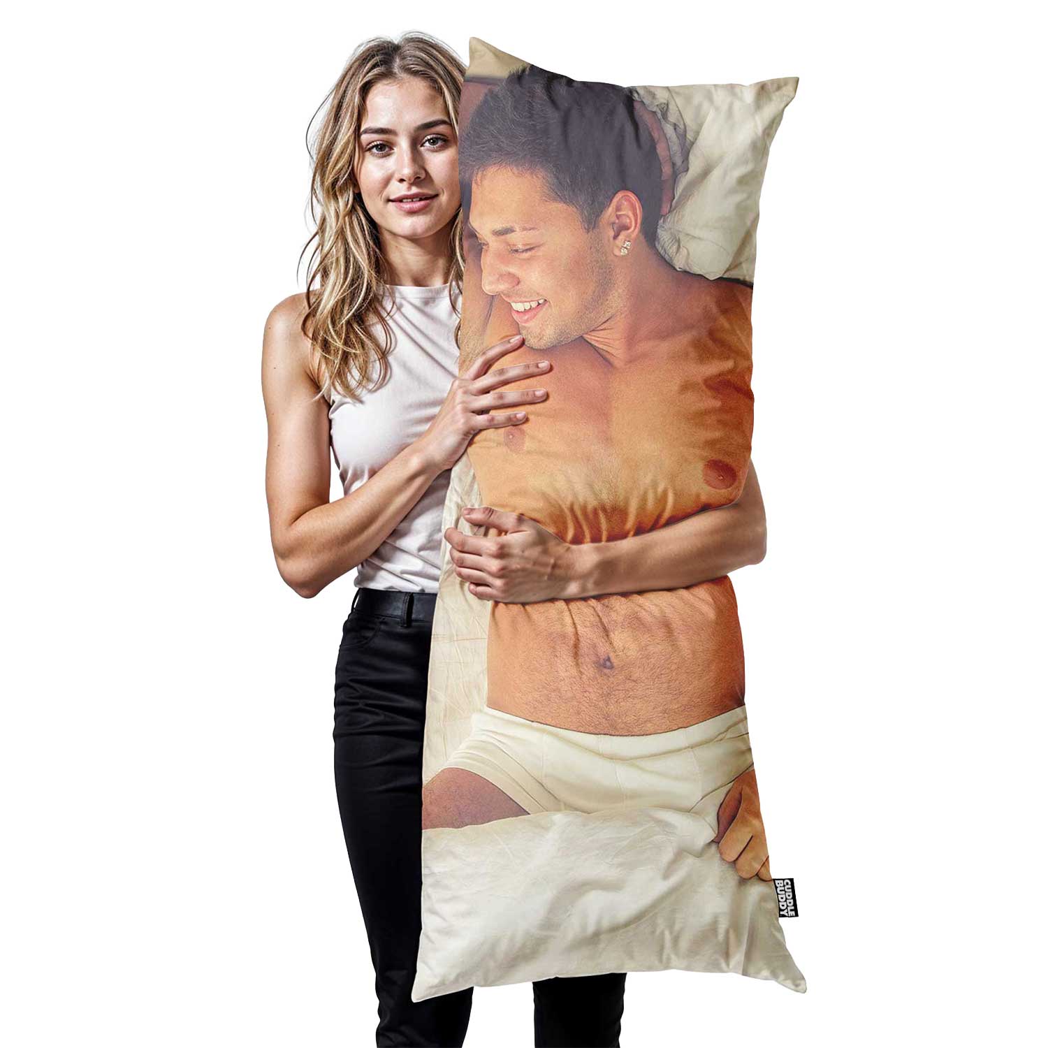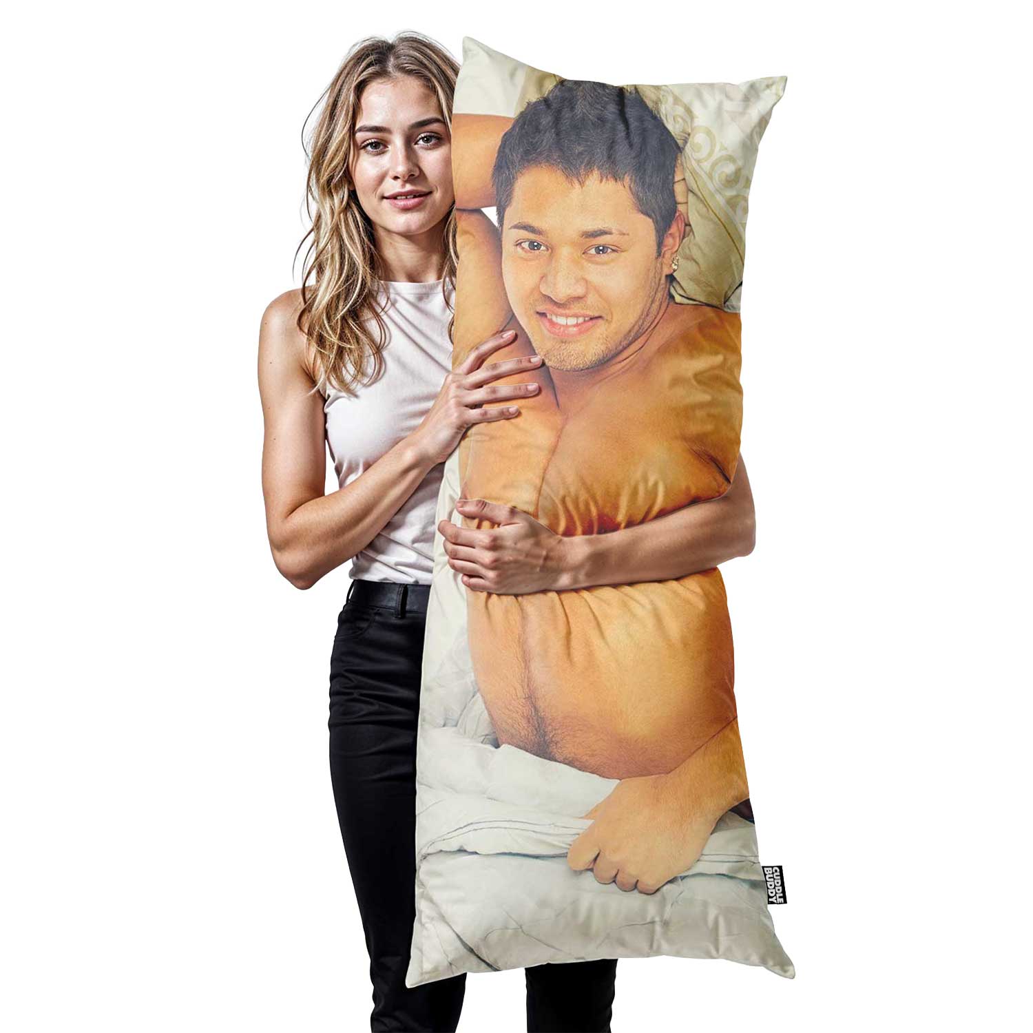 Create your very own Full Photo Lying Down Body Pillow Custom Photo Pillow! Upload a photo of yourself, your bestie, or even your pet, and watch as they get transformed into a ridiculously awesome XL body pillow that’s perfect for cuddling, lounging, or launching across the room. Whether you want to turn your friend into a cuddly masterpiece or have your own face greet you every nap time, this pillow is the hilarious, oversized snuggle buddy you didn’t know you needed.