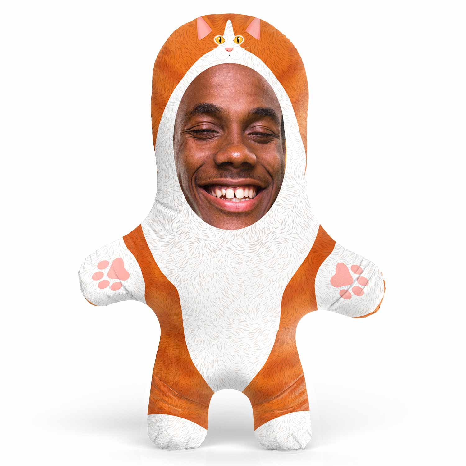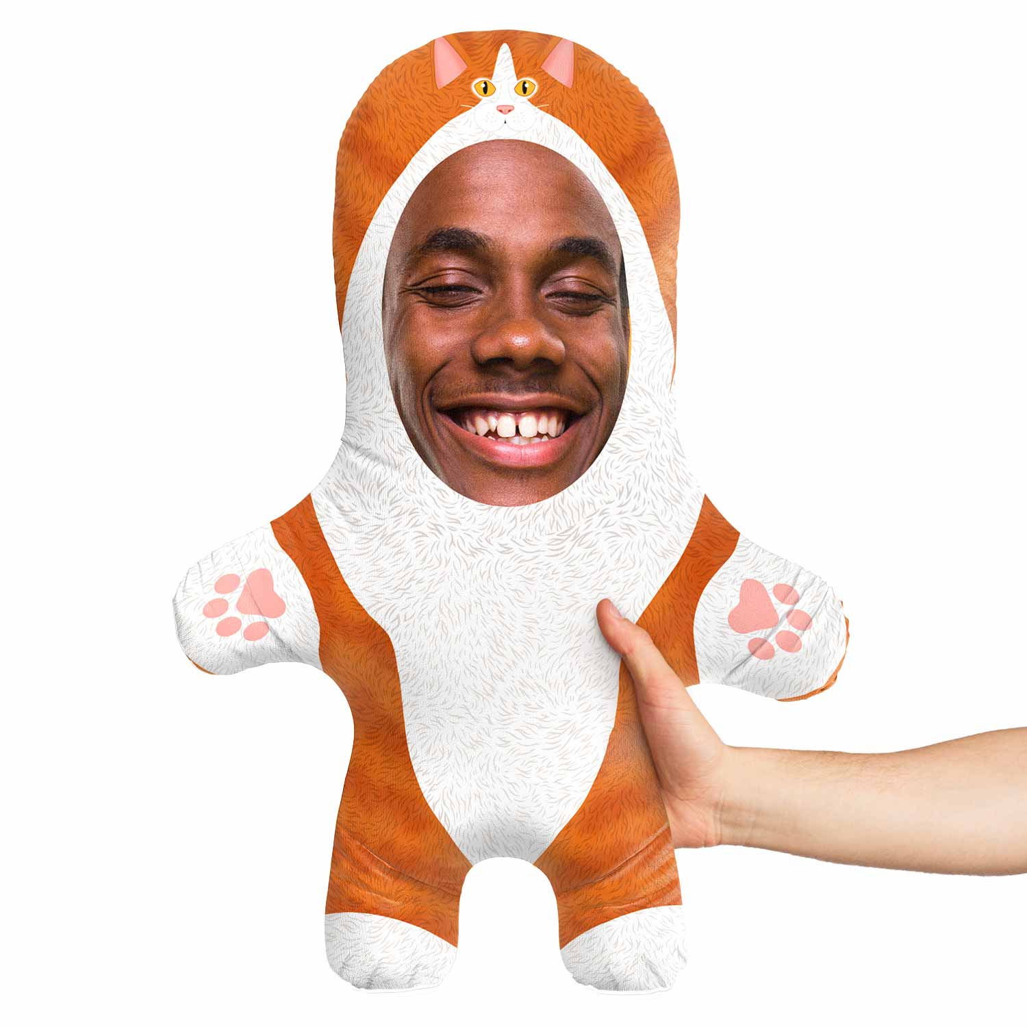Turn yourself or a loved one into a hilarious Ginger & White Cat Face Pillow for the perfect gift.