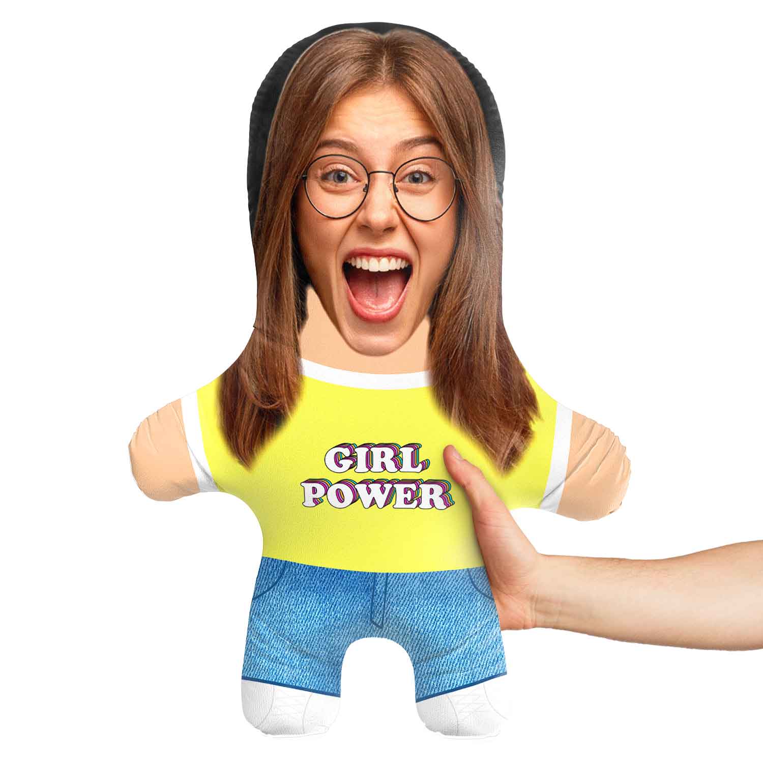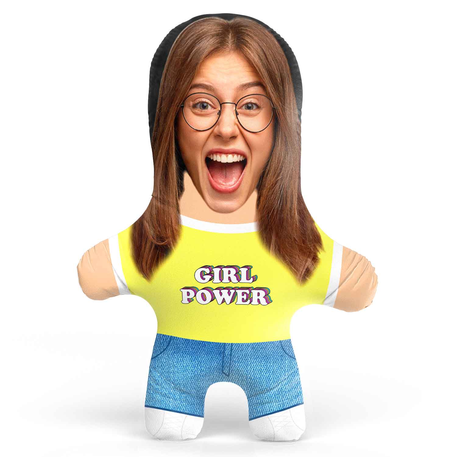 Turn yourself or a loved one into a hilarious Girl Power Face Pillow  doll for the perfect gift.