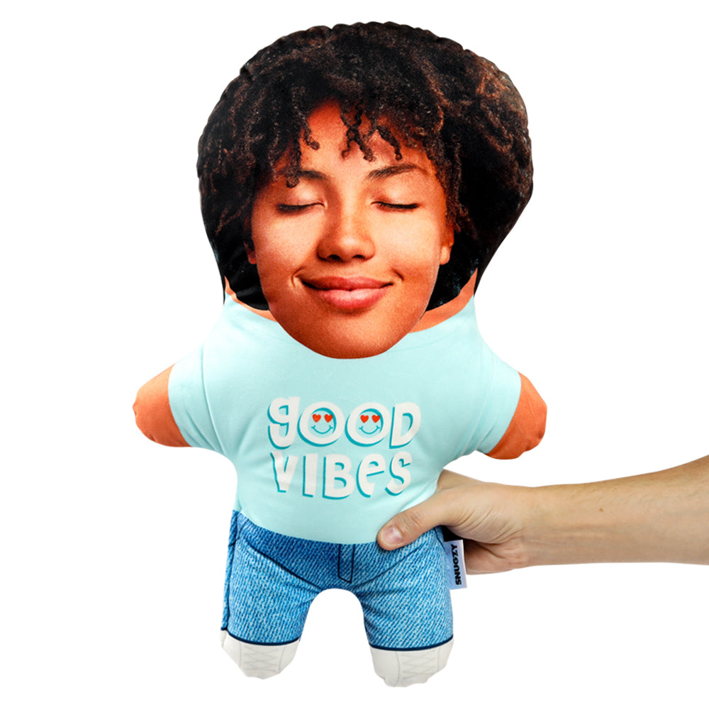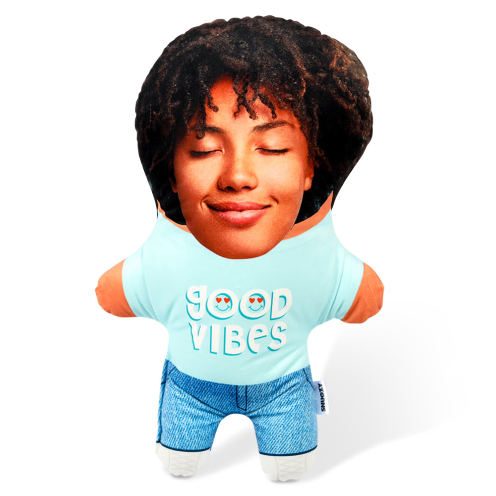 Turn yourself or a loved one into a hilarious Good Vibes Face Pillow for the perfect gift.