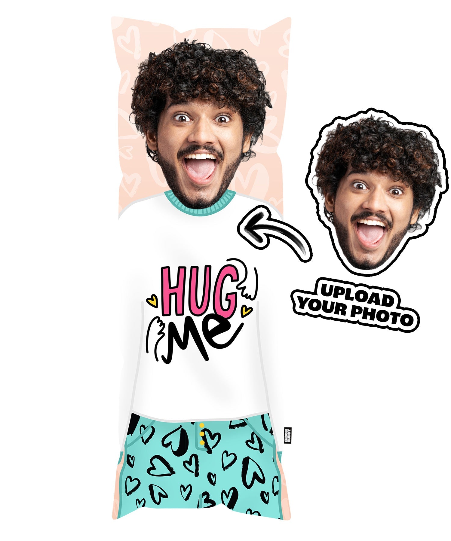 Need a dose of affection? Our Hug Me body pillow is here to provide the warm embraces you crave! This custom body pillow lets you upload a photo of someone who gives the best hugs—be it a partner, friend, or family member—and watch as they become your oversized cuddle companion. Perfect for those moments when you need a little extra love, this pillow is ideal for lazy weekends or chilly nights. So go ahead, snuggle up and let the hugs begin!