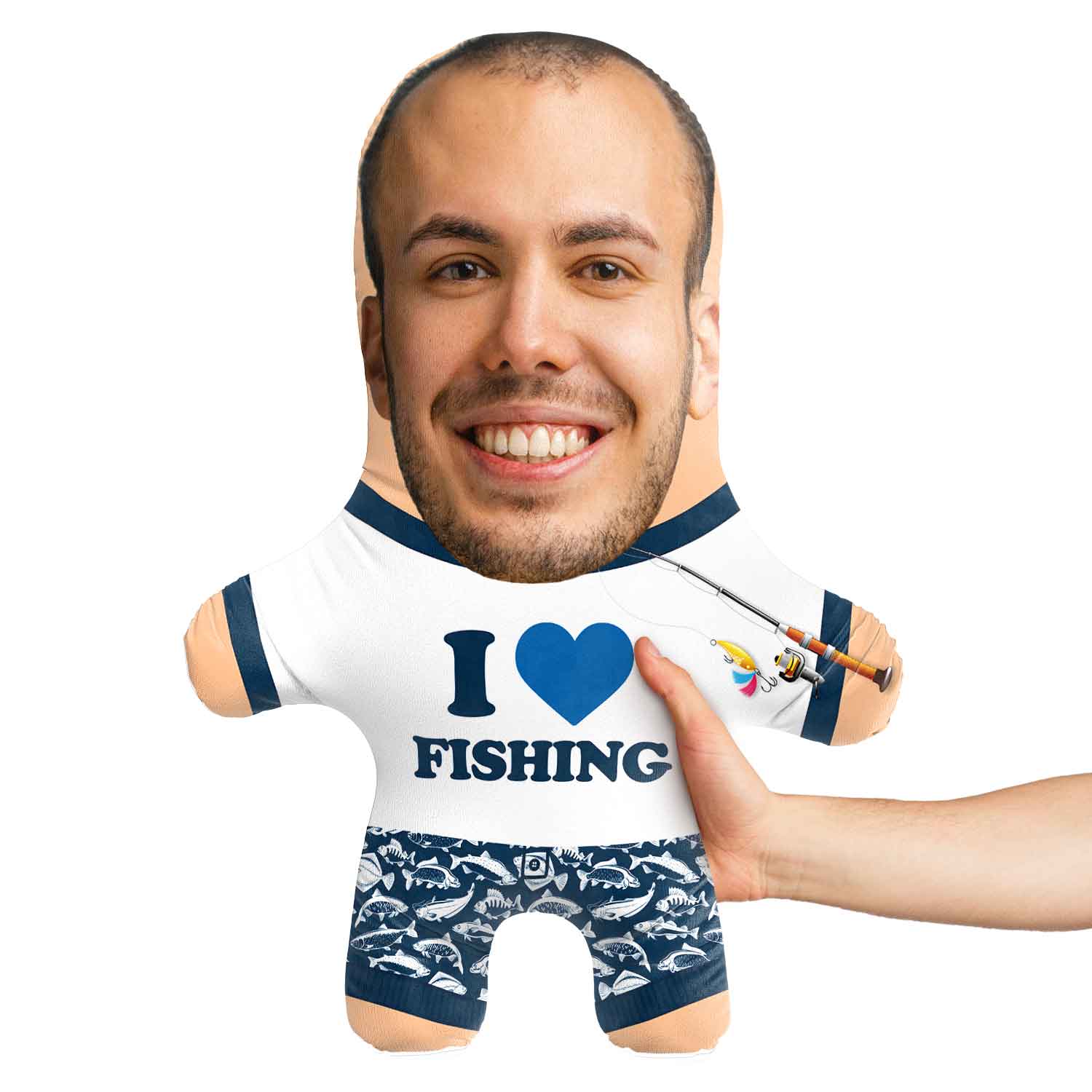 Turn yourself or a loved one into a hilarious I Heart Fishing Face Pillow for the perfect gift.