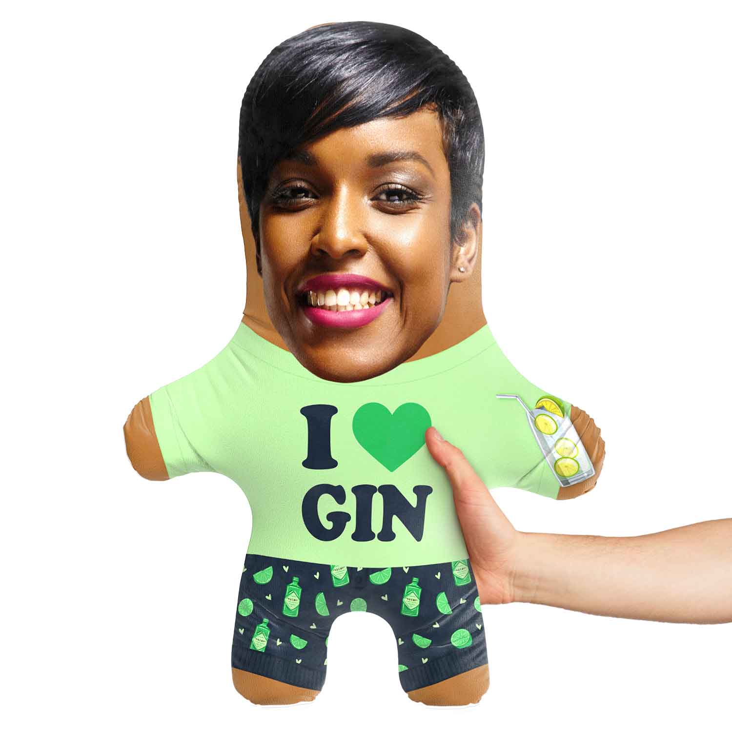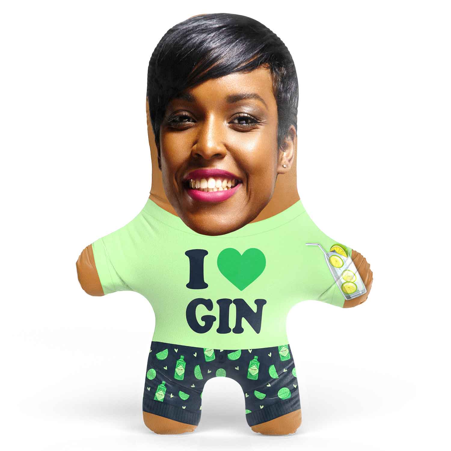 Turn yourself or a loved one into a hilarious I Heart Gin Face Pillow for the perfect gift.