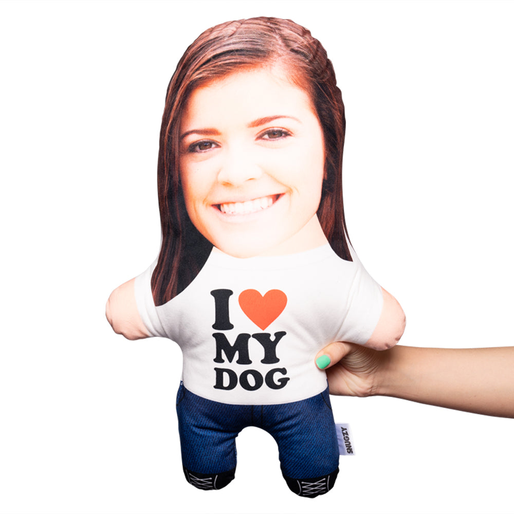 Turn yourself or a loved one into a hilarious 'I heart my Dog' slogan Face Pillow for the perfect gift.