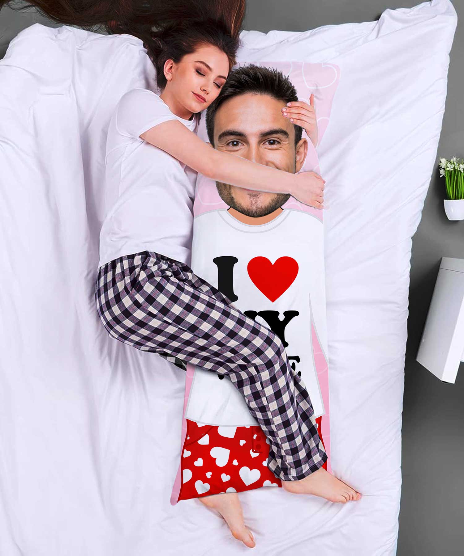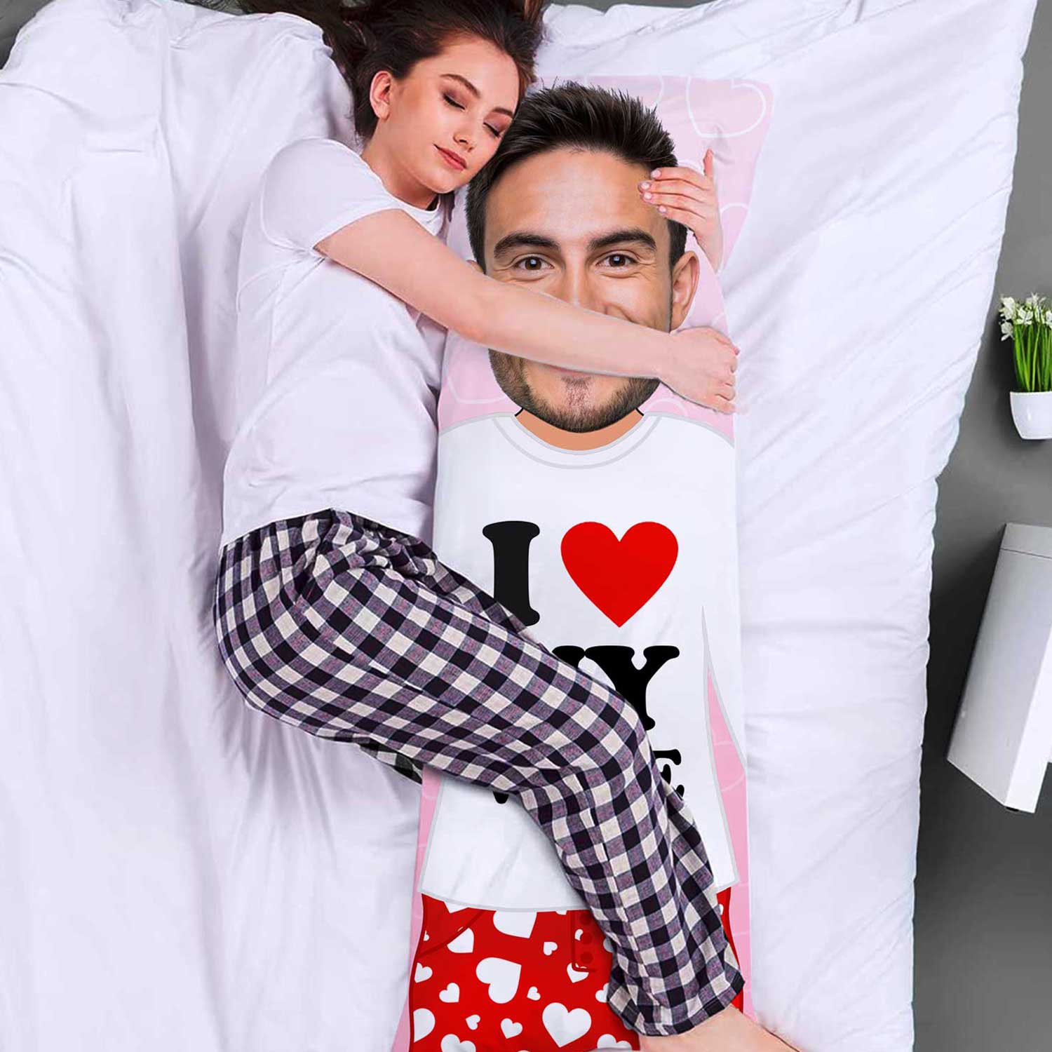 Show her just how much she means to you with the I Love My Wife custom body pillow. Upload her best photo and let this special pillow be a daily reminder of your love and commitment. Perfect for anniversaries, valentine's day or just because.