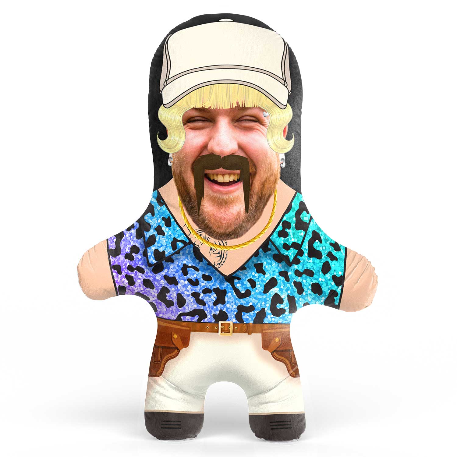 Now it's time for you to turn yourself, friend or loved one into the gun-toting, tiger loving cowboy with a mullet with your very own Joe Exotic Face Pillow to truly become the ultimate Tiger King!