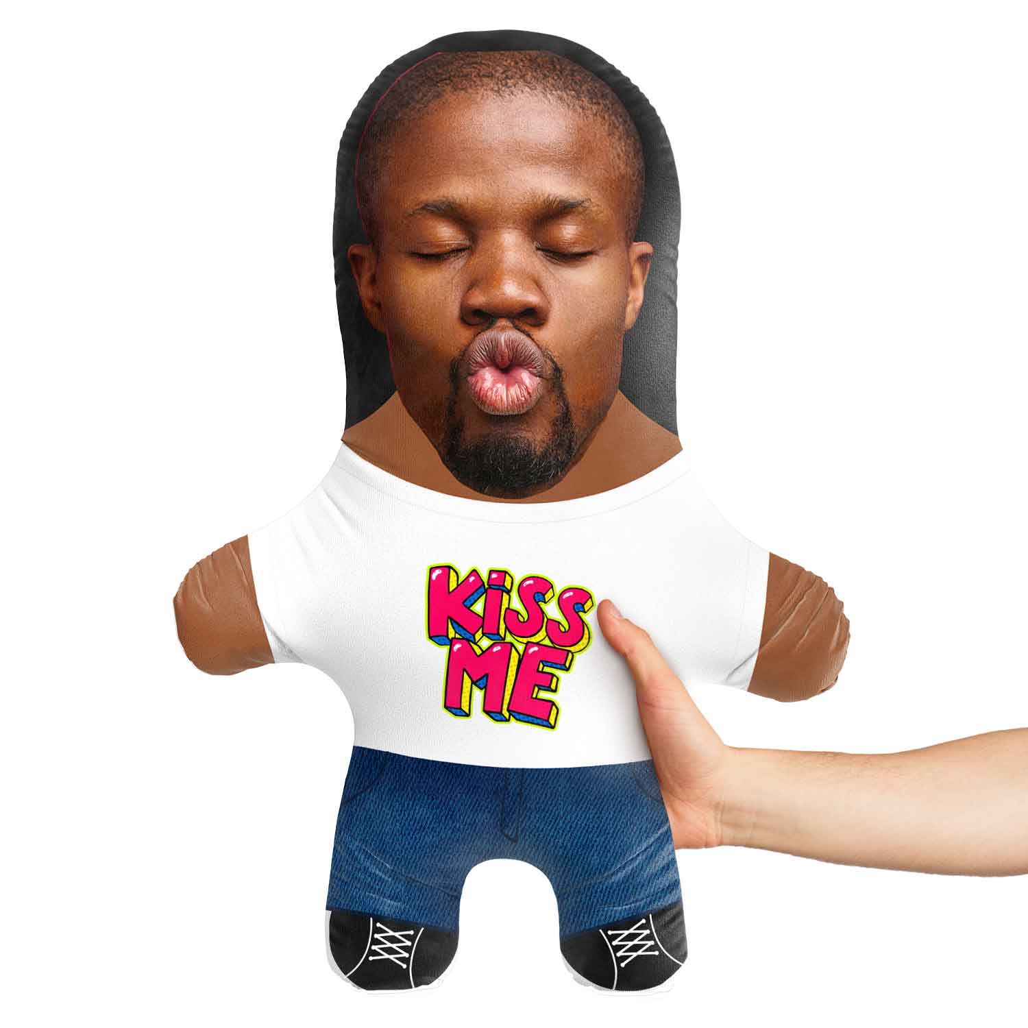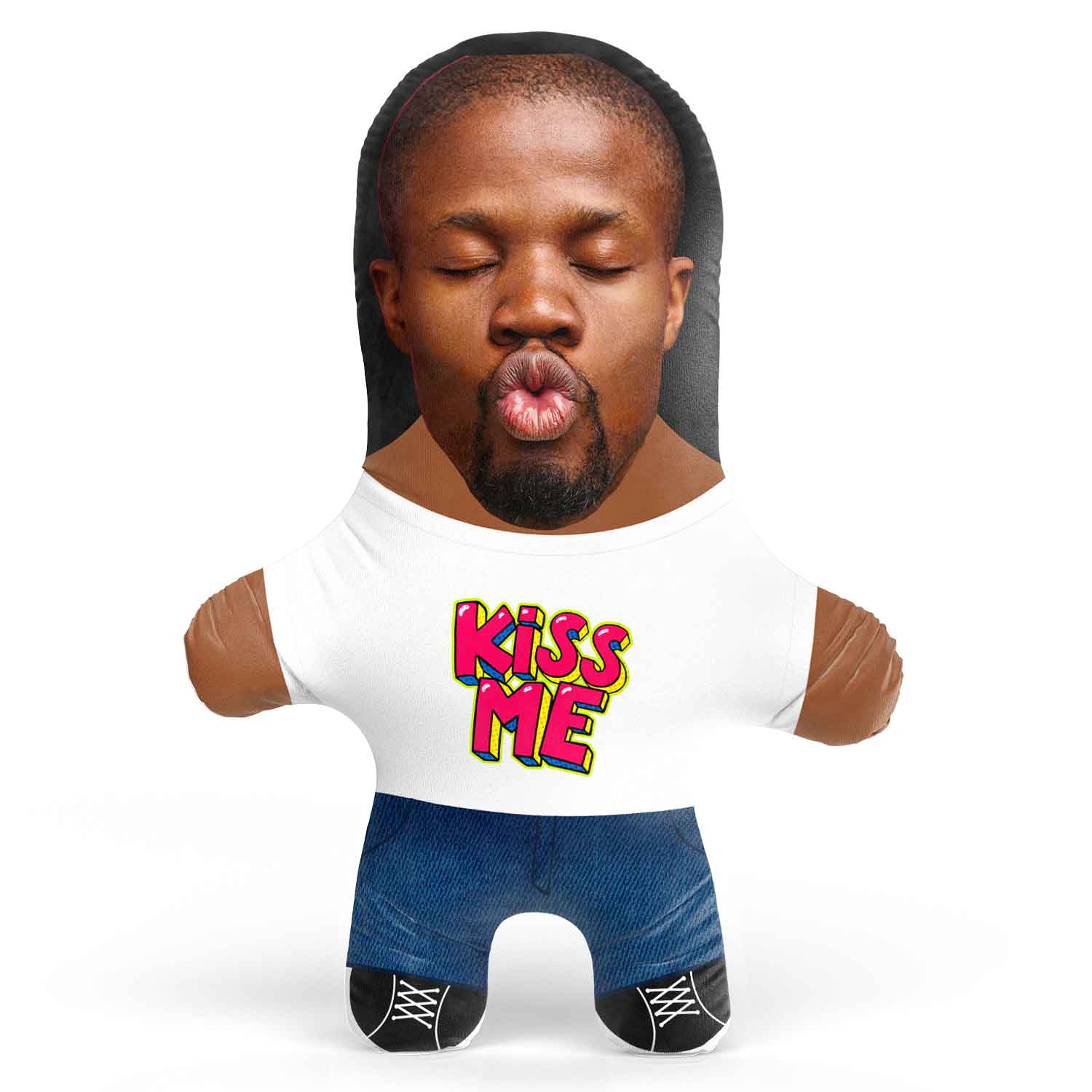 Turn yourself or a loved one into a hilarious Kiss Me Face Pillow for the perfect gift.