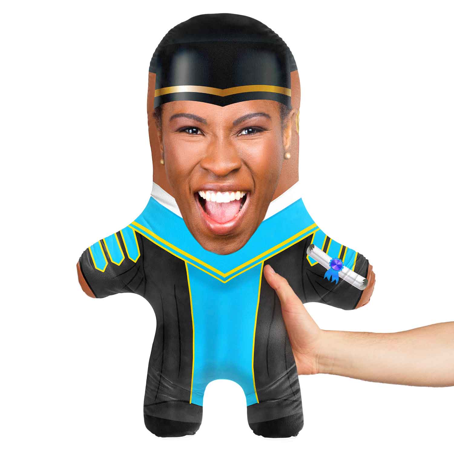 Turn yourself or a loved one into a hilarious Light Blue Doctoral/PHD Graduation Gown Face Pillow for the perfect gift.