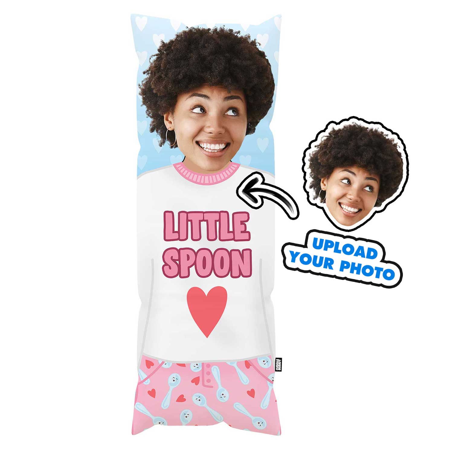 Feeling like the little spoon? Embrace it with the Little Spoon custom body pillow from body pillow. This snug photo pillow fits perfectly in your arms, making every cuddle session feel just right. Just upload a photo of yourself, your partner, or crush, and watch as they transform into a ridiculously awesome XL body pillow.