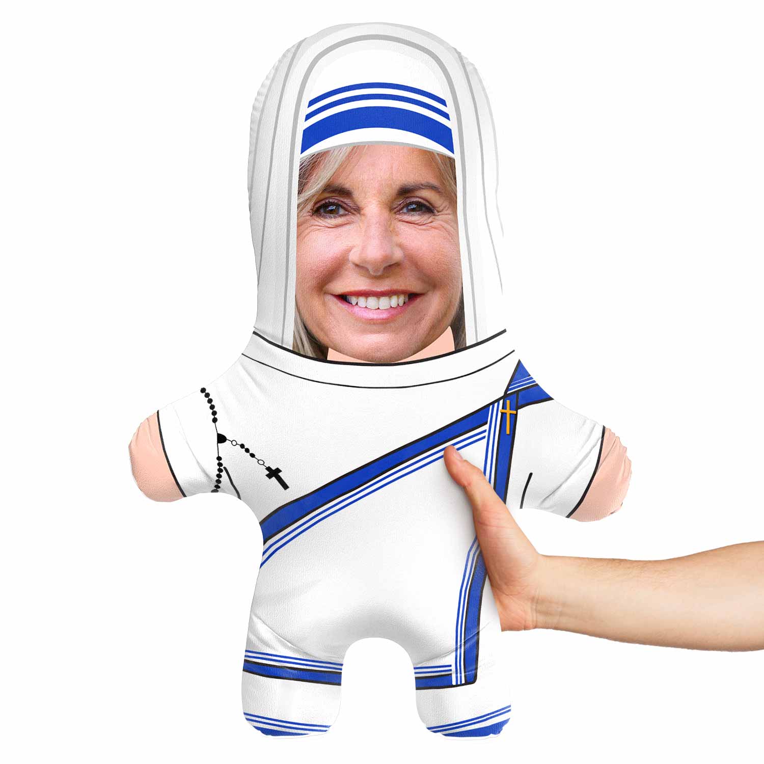 Give yourself a head start and boost by transforming yourself into the true saint herself with our Snugzy Mother Theresa Face Pillow.
