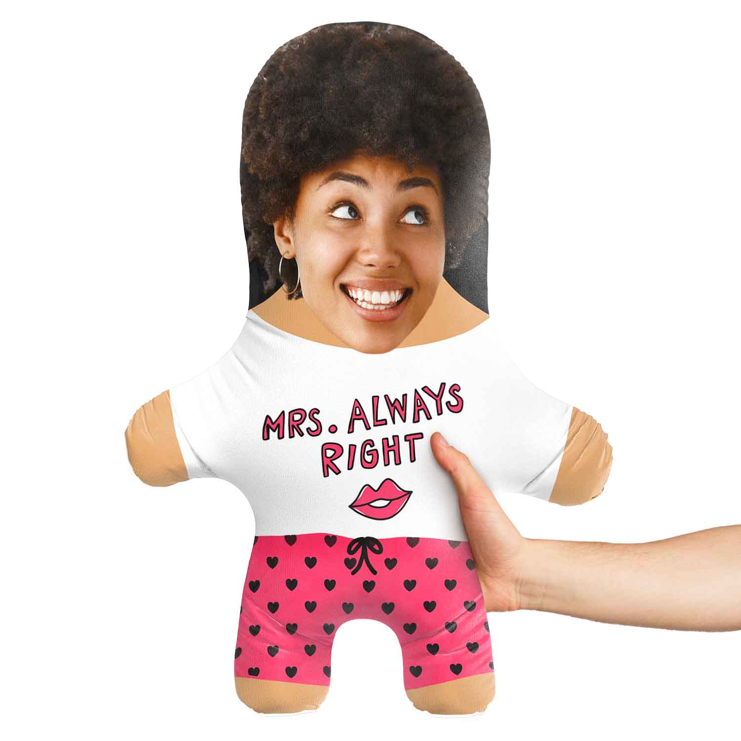 Turn yourself or a loved one into a hilarious Mrs Always Right Face Pillow for the perfect gift.