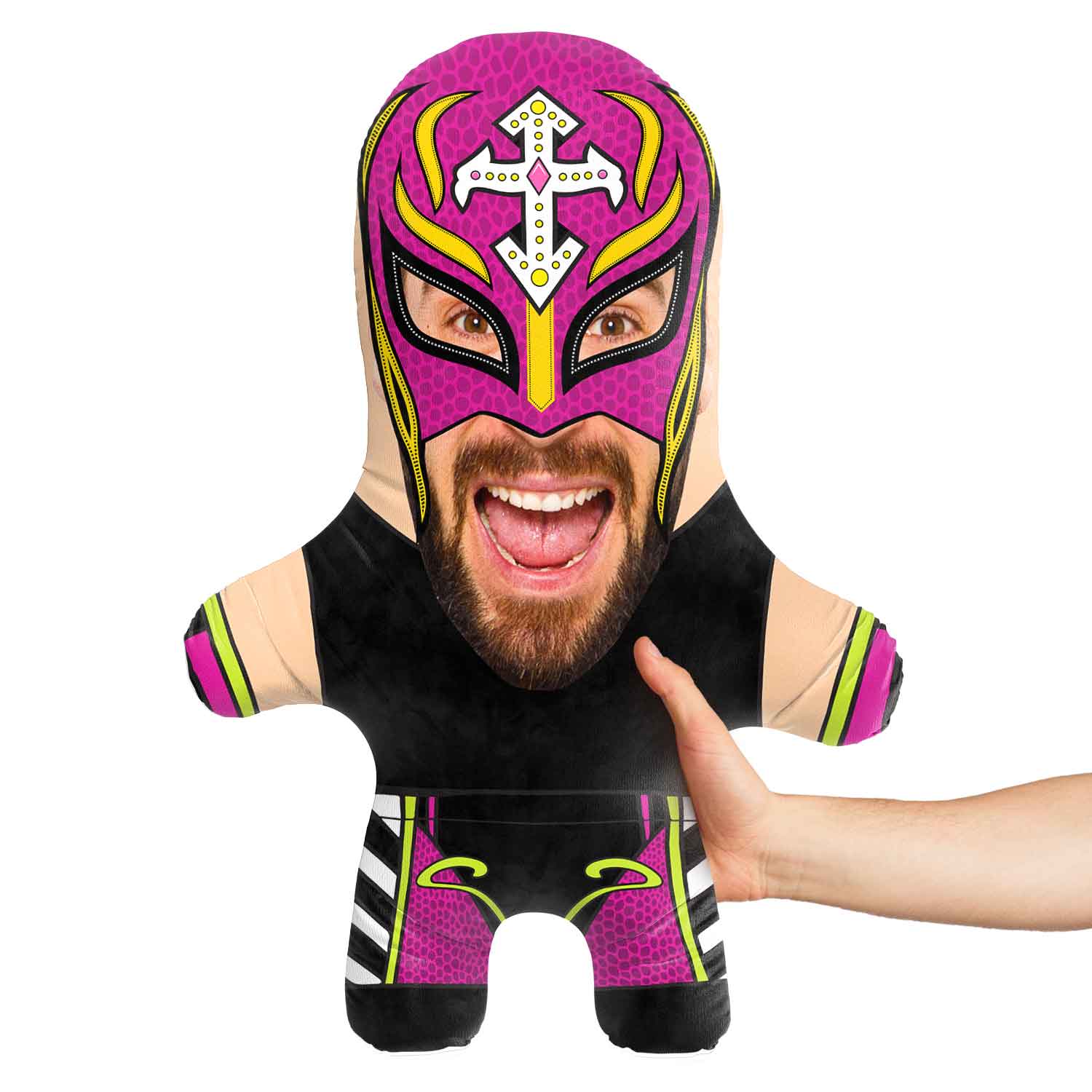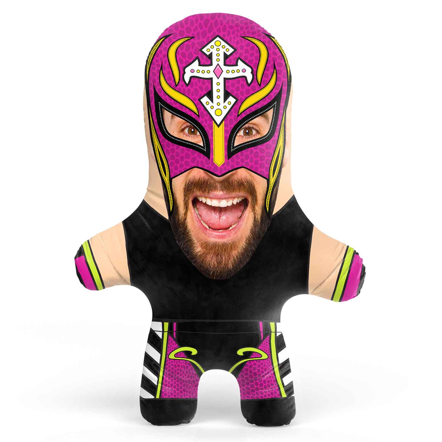 Turn yourself or a loved one into a hilarious Mysterio Wrestler Face Pillow for the perfect gift.