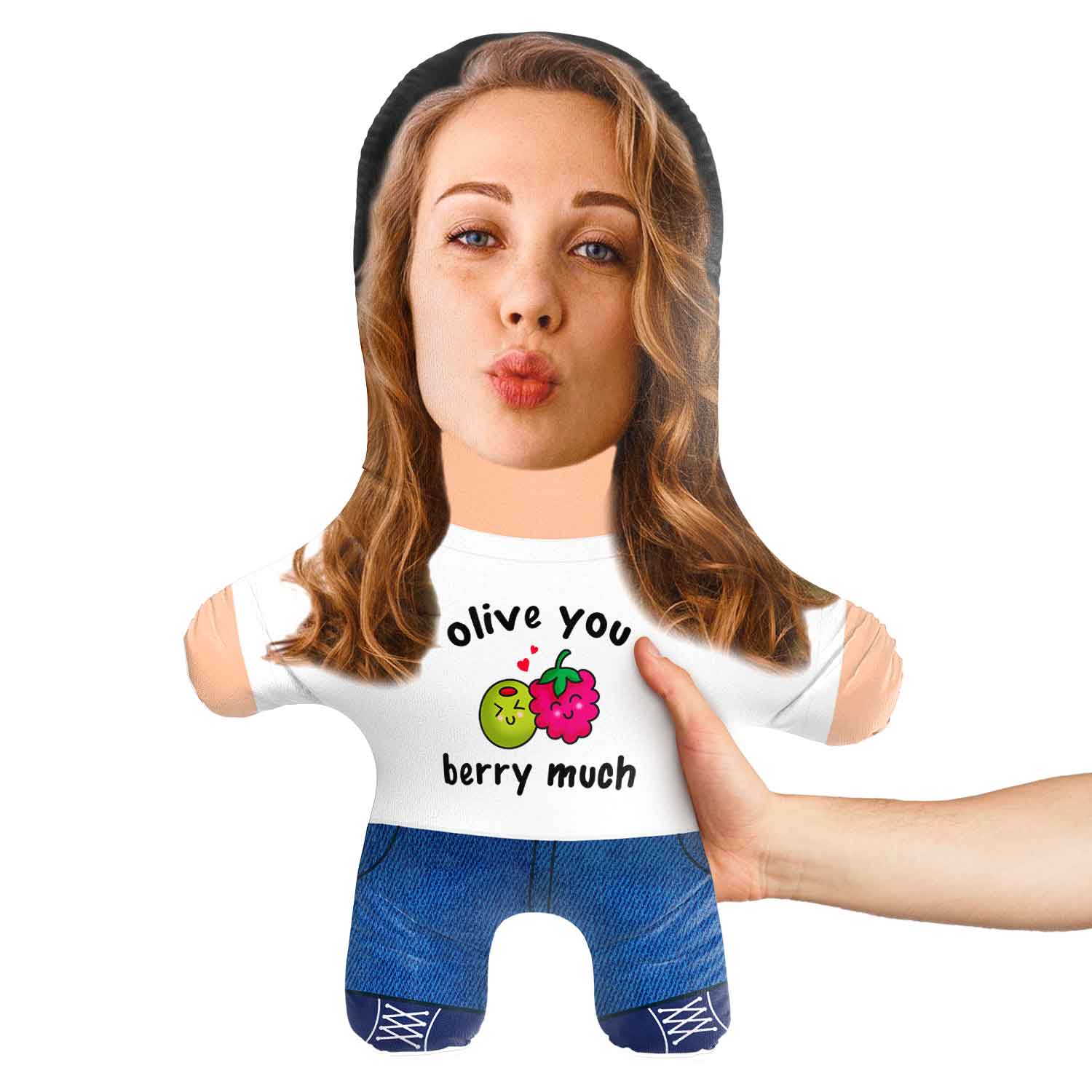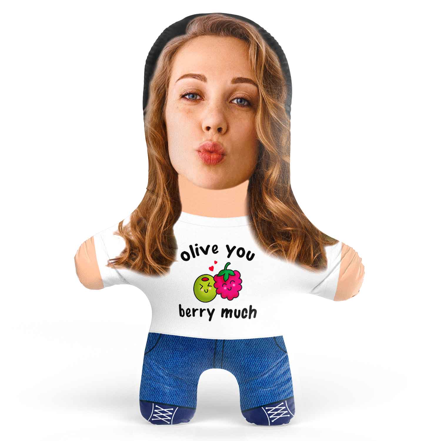 Turn yourself or a loved one into a hilarious Face Pillow with an Olive and Berry design, for the perfect gift.