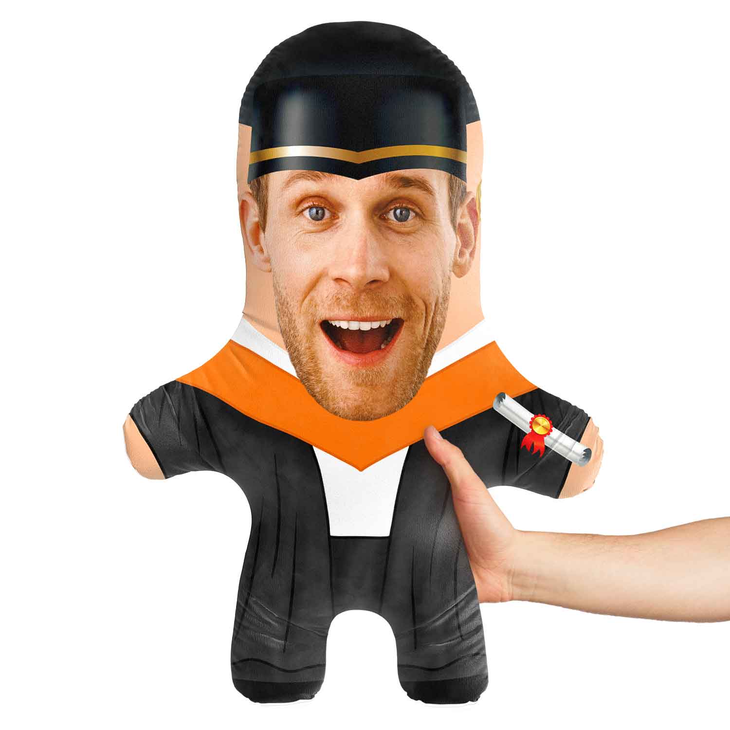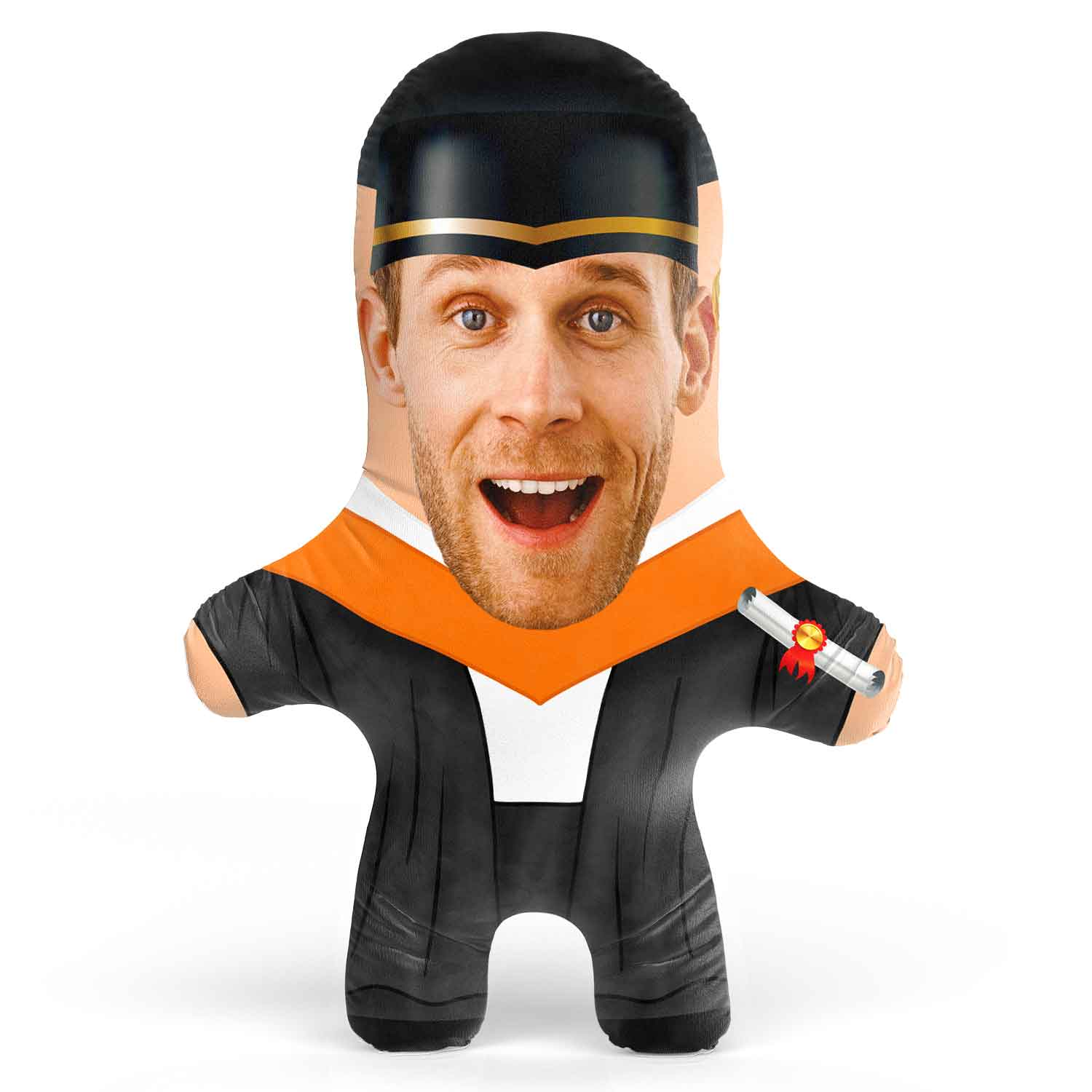 Turn yourself or a loved one into a hilarious Orange Graduation Gown Face Pillow for the perfect gift.