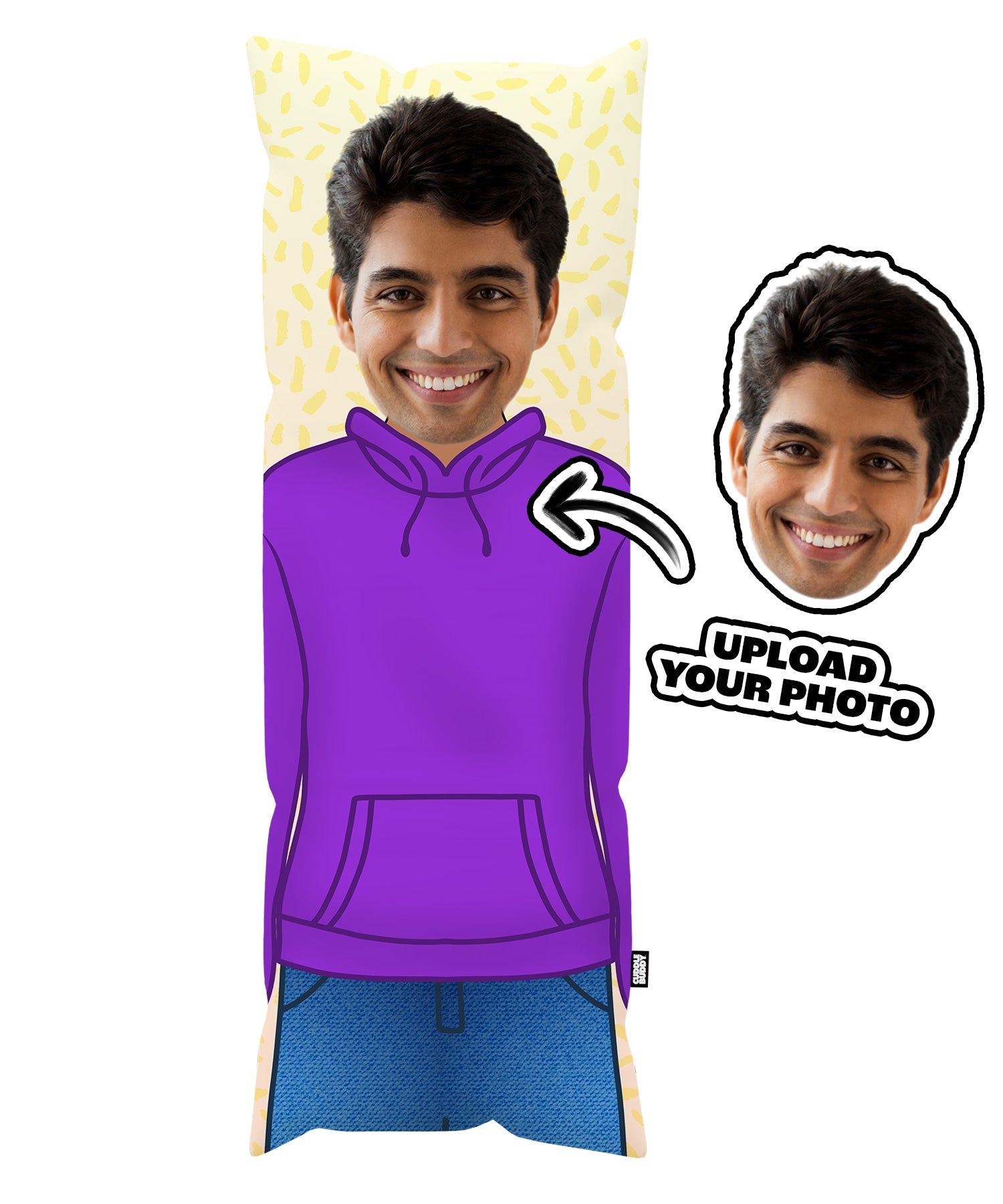 Bring a hint of mystery and style to your cuddle time with the Purple Hoodie body pillow. This personalised body pillow can be customised with a face photo, giving you a cuddle companion that’s both unique and stylish. The rich purple tone adds a touch of elegance to your space, perfect for relaxing evenings and cosy snuggles. Whether as a gift or a special treat for yourself, this purple hoodie buddy is ready to bring warmth and charm to any room.
