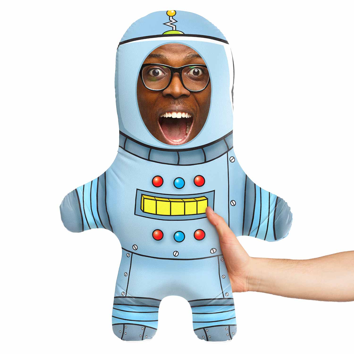 Upload a high-quality photo of your lovely face to become the robot you always wanted to be or choose to give this cuddly Robot Face Pillow to someone you love