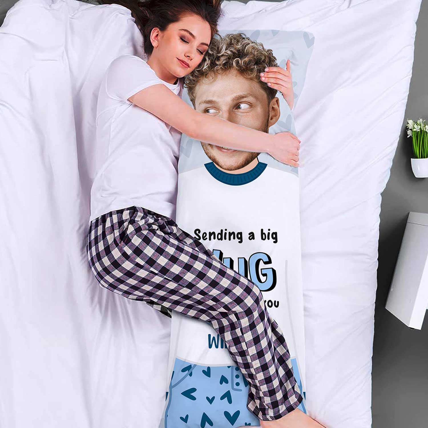 Send love and warmth from afar with the Sending A Big Hug Message body pillow. This personalised pillow is a comforting stand-in for those you can’t be with, designed to bring the closeness of a hug straight to their side. Just add a face photo for a unique, heartfelt touch, making this body pillow the perfect gift for anyone who could use a big, comforting hug.
