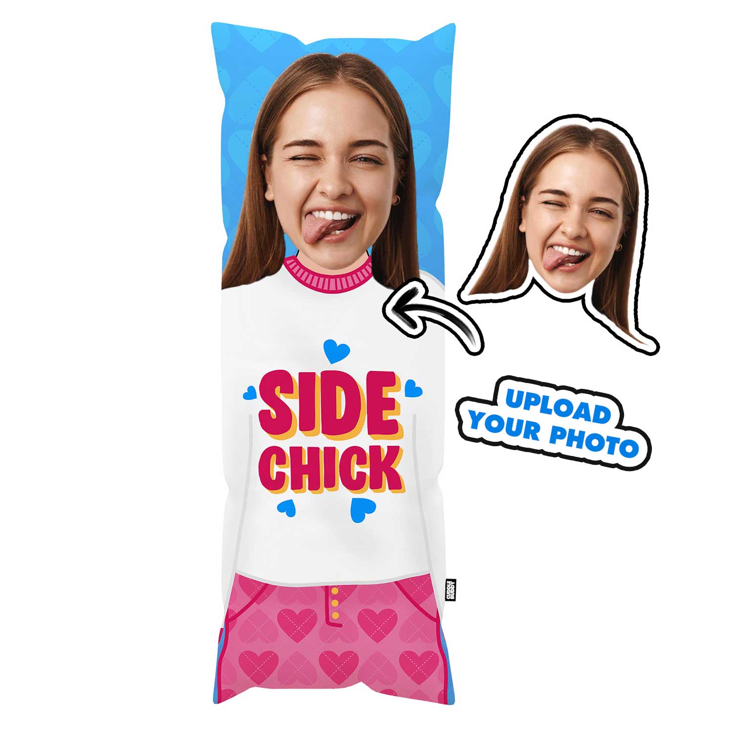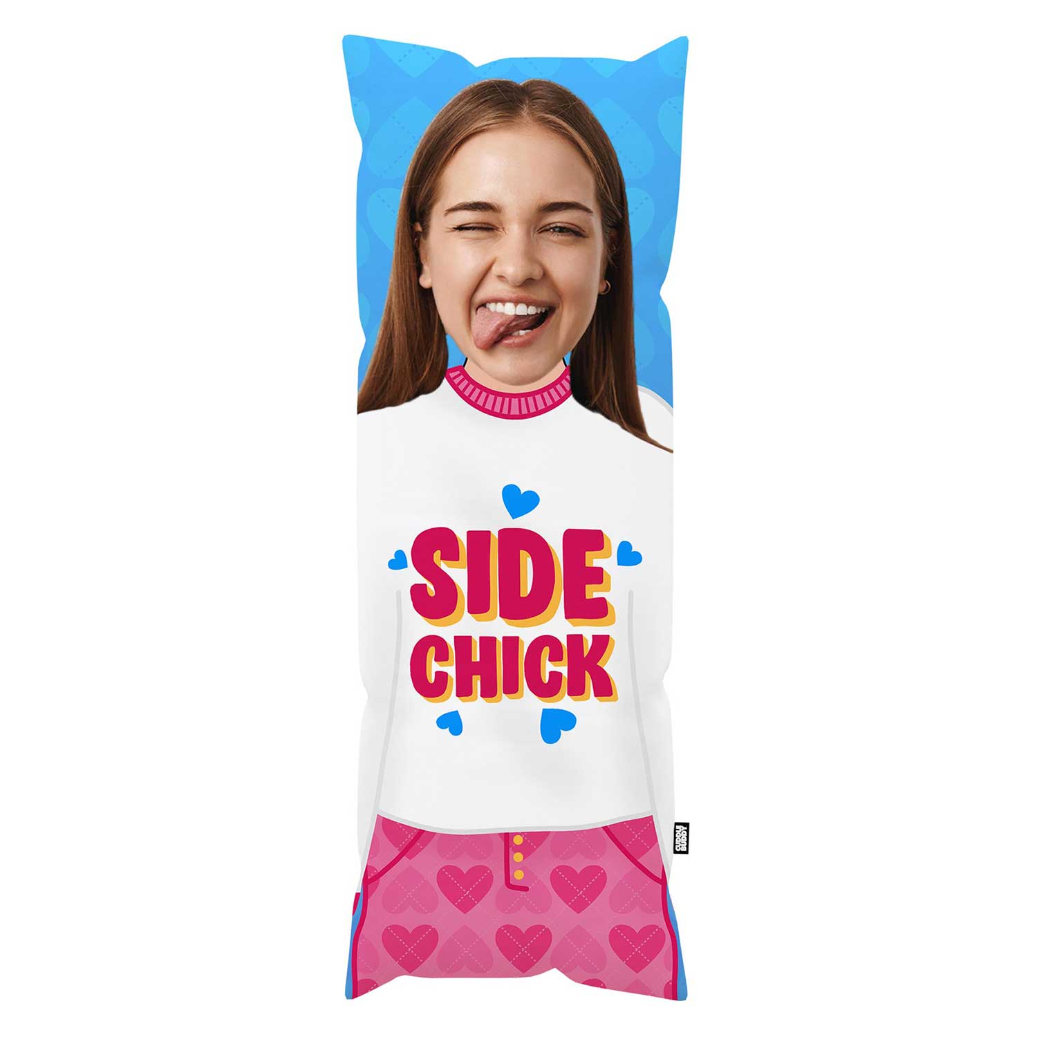 Meet the Side Chick body pillow—the cuddle companion who’s all about fun and friendship. With this custom face pillow, you can bring a face photo to life in a way that’s perfect for playful snuggles. Great as a humorous gift for friends or a quirky addition to your own space, this pillow makes bedtime or couch lounging feel extra cozy. Ideal for those who like a little flair with their comfort, it’s a body pillow that’s all about good vibes!