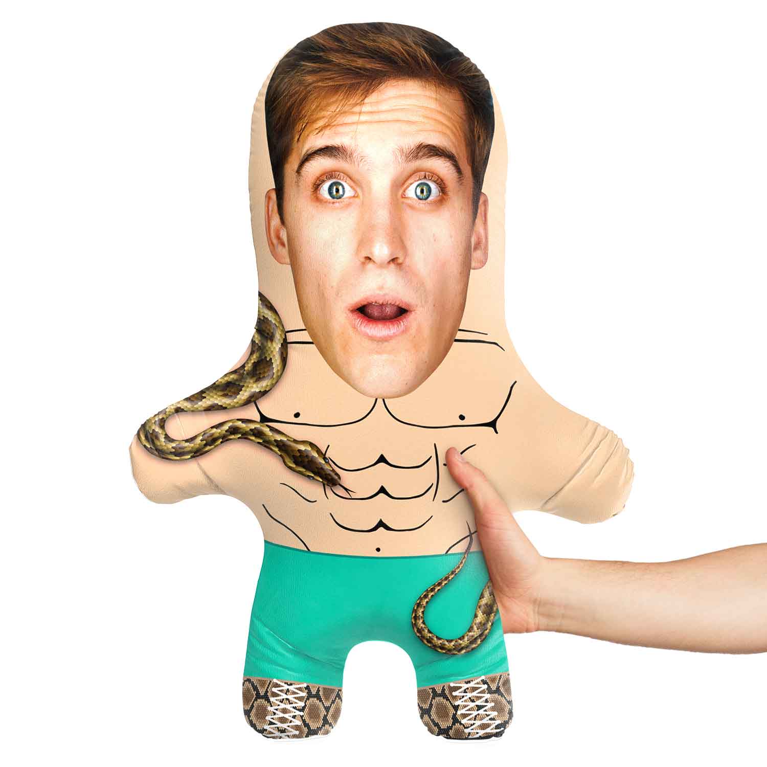 Turn yourself or a loved one into a hilarious Snake Wrestler Face Pillow for the perfect gift.