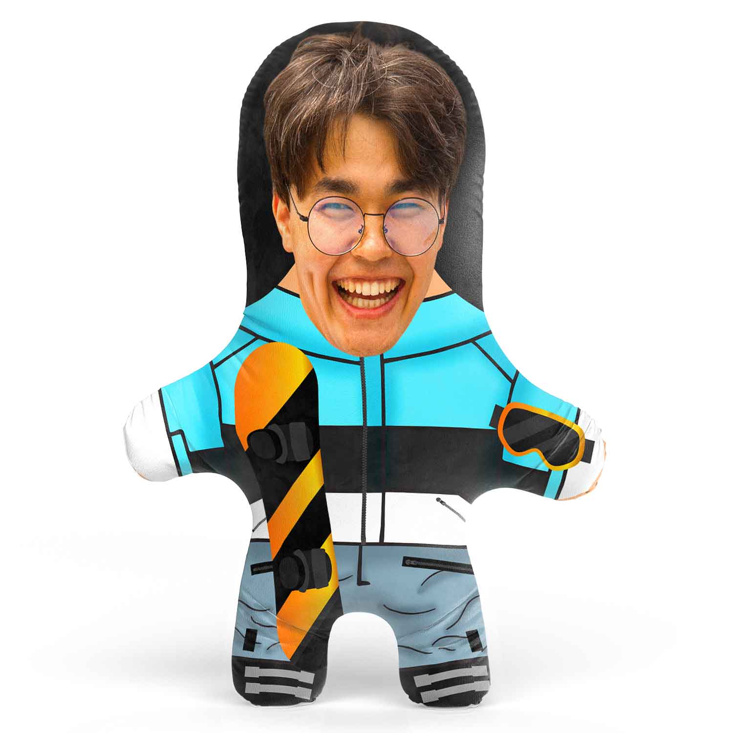 Turn yourself or loved one into a Snowboarder Face Pillow Snugzy.
