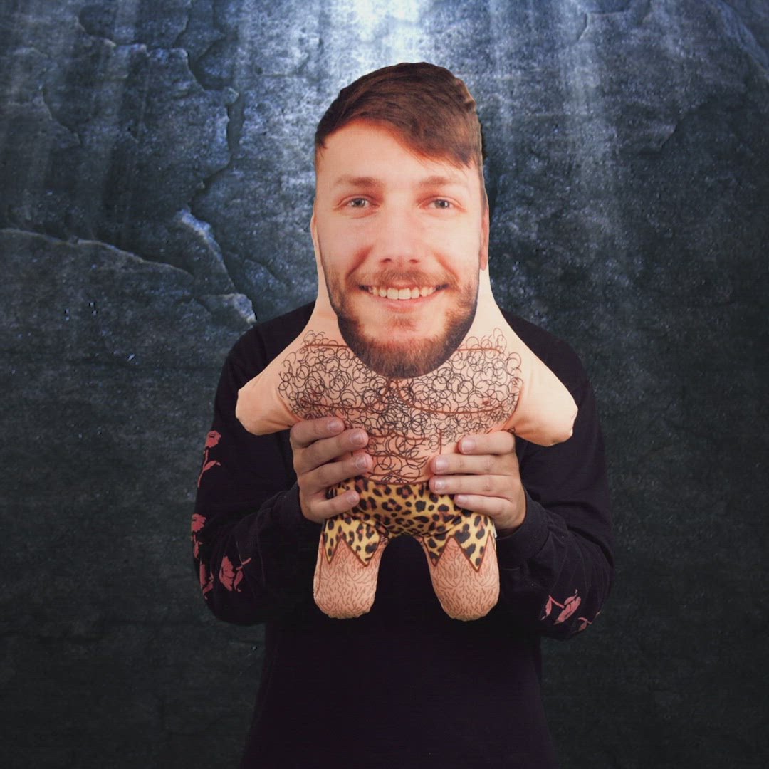 Turn back time and evolution, transform yourself into a Snugzy Caveman Face Pillow.