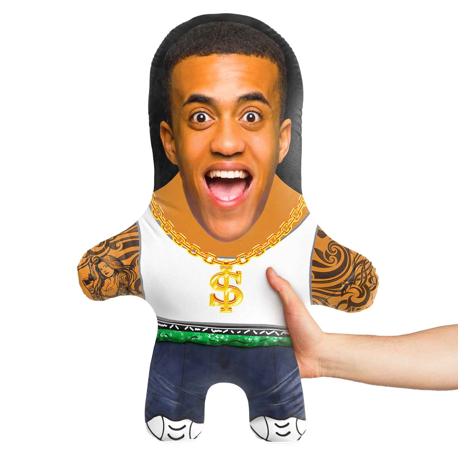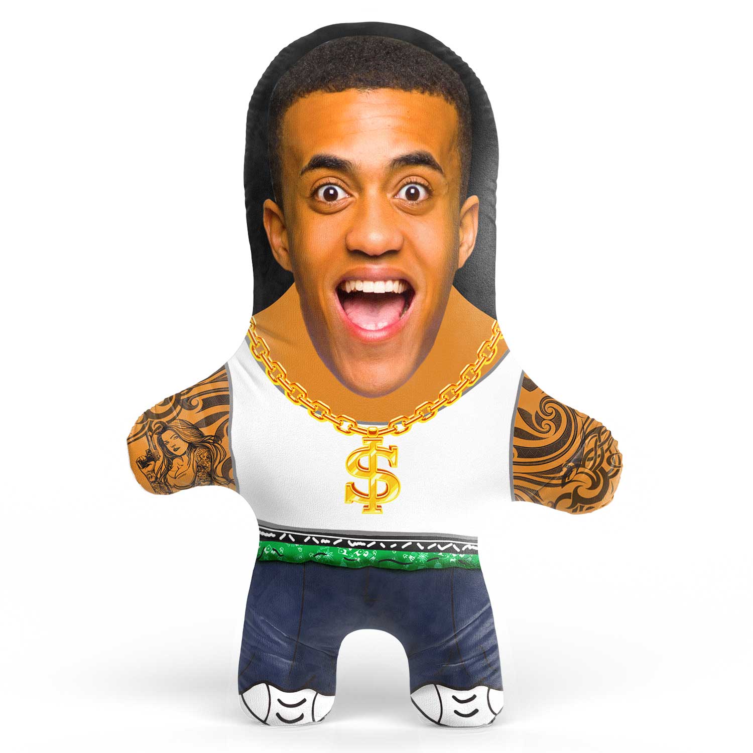 Want to have some ice around your neck and swag in your step? Let everyone know who's boss with our Snugzy Gangster Face Pillow and gain respect with your own custom face teddy.