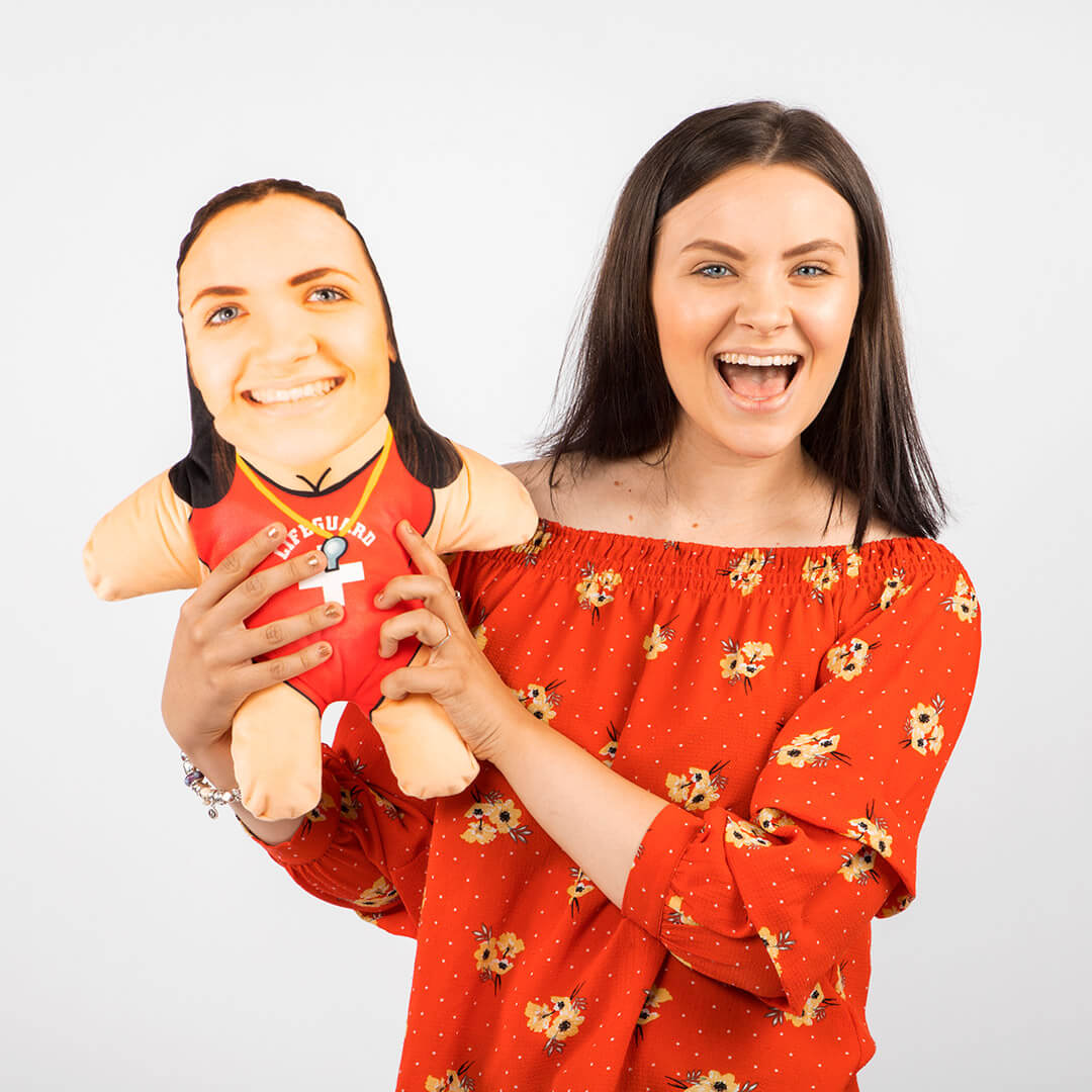 Upload a high-quality photo of you or your loved one and strut your stuff as a cuddly cushion dressed in the finest red swimwear.