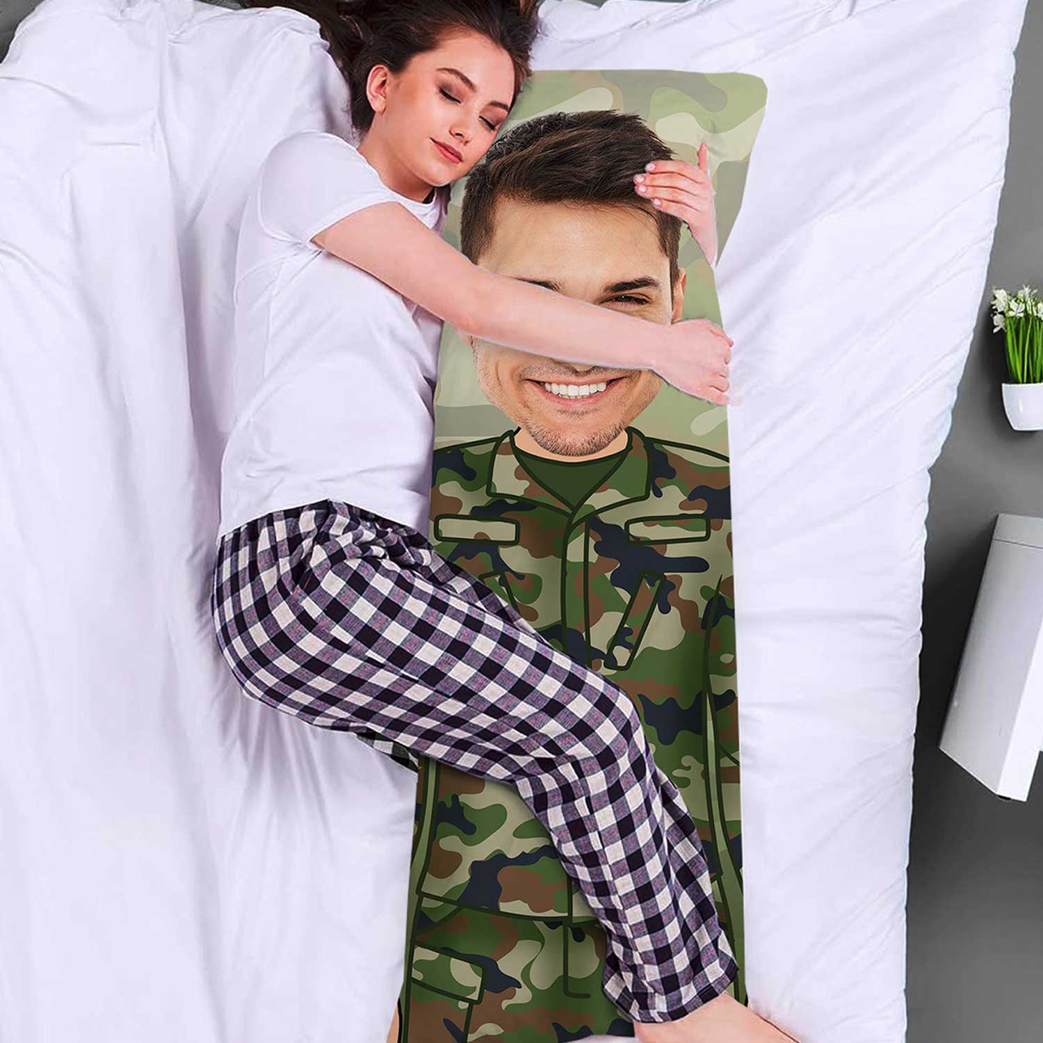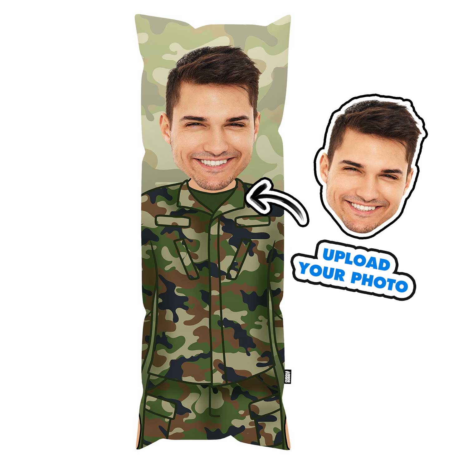 Bring a bit of quirkiness to your bedtime routine with the Soldier body pillow. Designed for comfort and strength, this custom body pillow offers the warmth and security of a hug from a loved one in the armed forces. Add a face photo to make it a personal tribute to someone special. Whether they’re far away or nearby, this hug pillow brings their spirit closer, making it the perfect cuddle companion to honour them each night. Ideal for military families and anyone who wants to keep their hero close at heart.