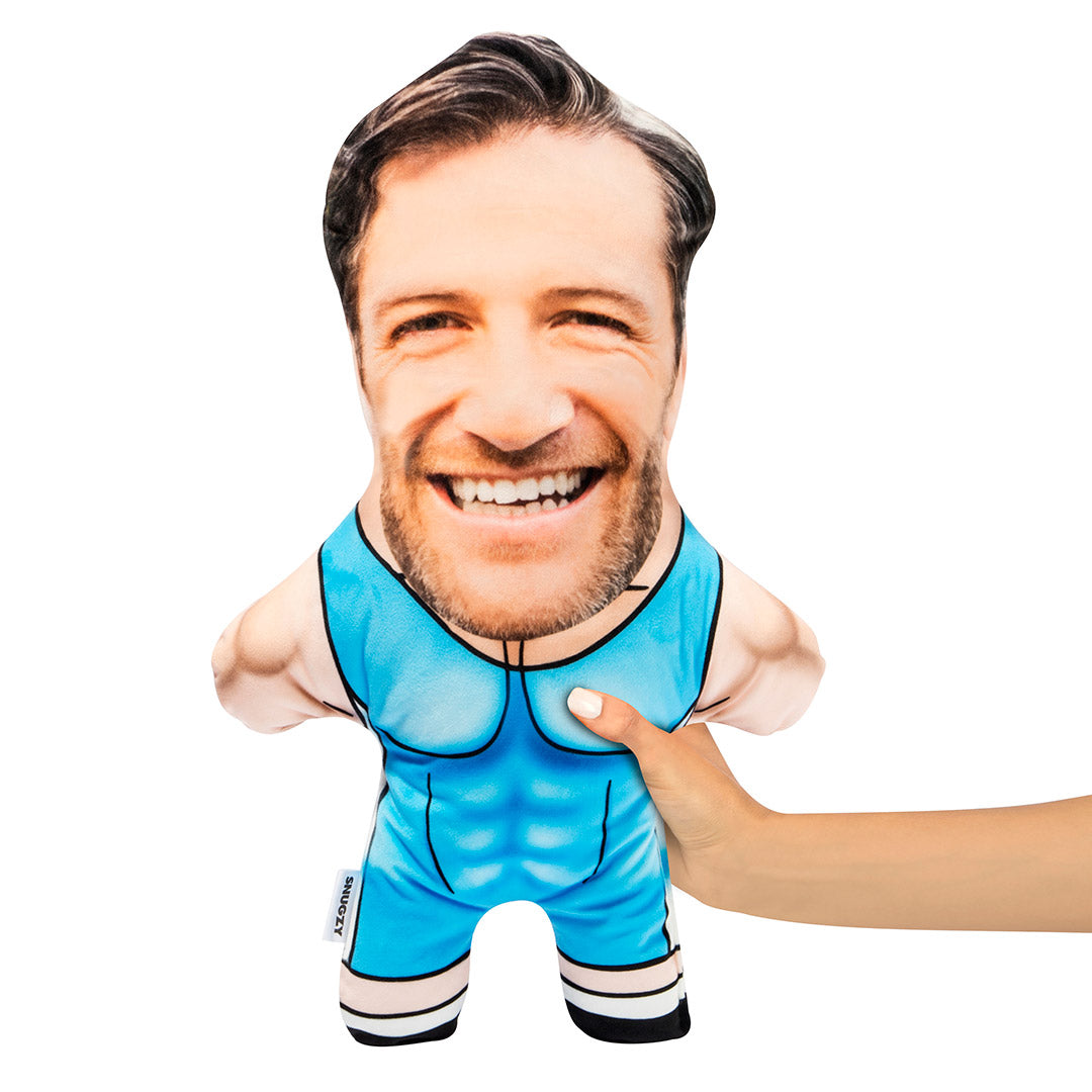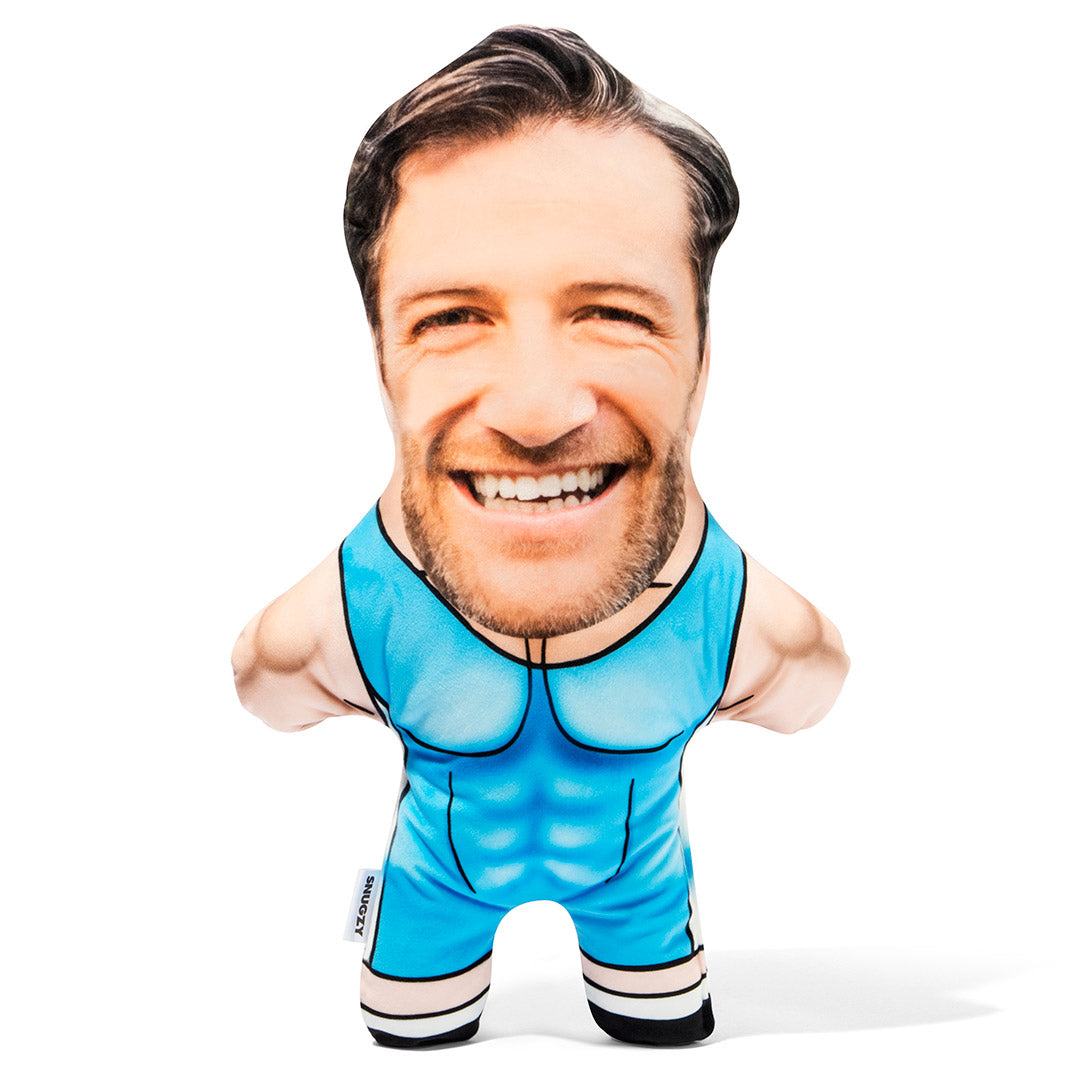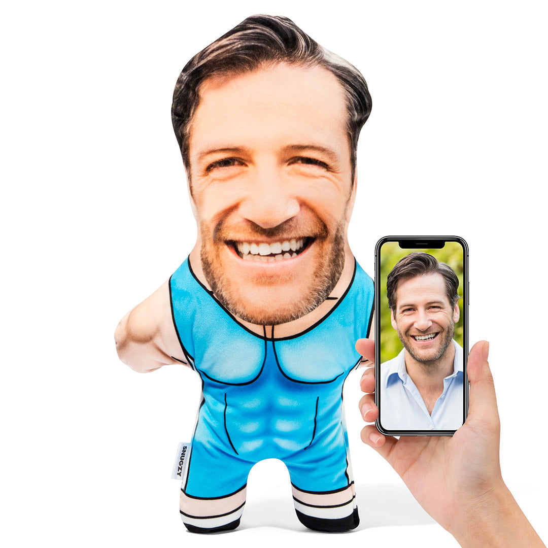 Push!.. And jerk! This will probably be one of the lightest people you will have ever lifted! What better than it being your little Face Pillow in a weightlifting costume.
